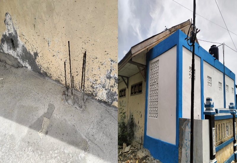 Besi tulangan beton diduga tidak sesuai standar, mayoritas berdiameter sekitar 10 milimeter, padahal dalam konstruksi kolom beton yang lazim dan tercantum dalam RAB, digunakan besi 12 milimeter. Selisih ini bukan persoalan teknis kecil, tetapi menyangkut keselamatan dan usia bangunan. Lebih jauh, hasil pengecoran yang terlihat asal jadi dan mulai menunjukkan indikasi retakan memperkuat dugaan pengabaian mutu.
