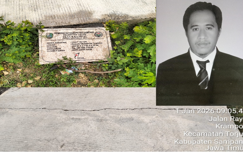 SAMPANG (lenterapost.id)– Klarifikasi Pemerintah Desa Krampon, Kecamatan Torjun, atas amburadulnya proyek rabat beton Dana Desa Tahun Anggaran 2025 justru dinilai sebagai tameng retoris untuk mengaburkan fakta. Pernyataan Sudar, selaku Penjabat (PJ) Kepala Desa Krampon, bukan meredakan polemik, melainkan mempertebal dugaan adanya pembohongan publik yang disusun secara sistematis dan berlapis. Sabtu (03/01/2026).