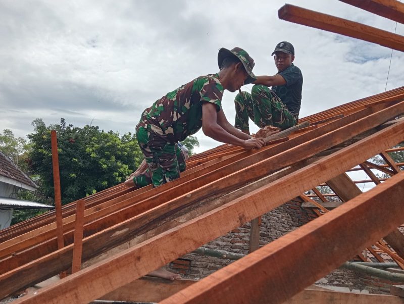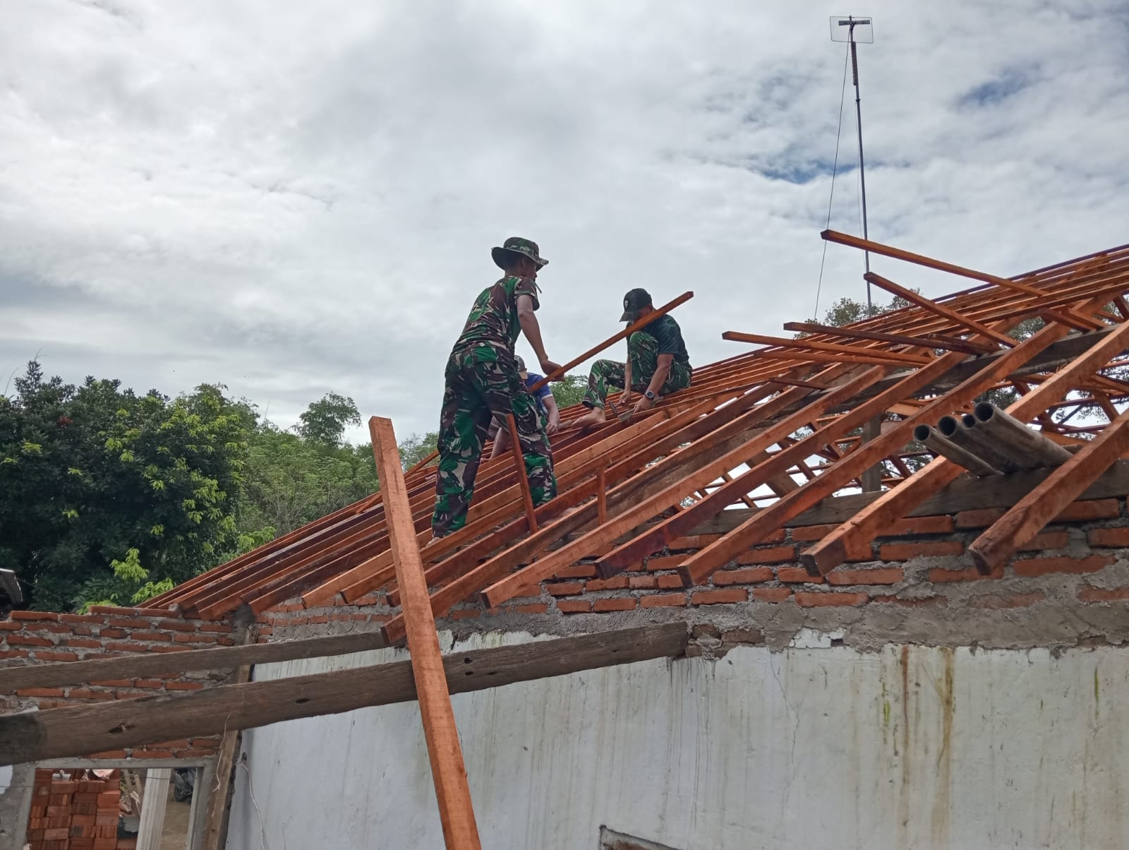 Lenterapost.id Program rehabilitasi Rumah Tidak Layak Huni (RTLH) dalam rangka TMMD Ke-127 Kodim 0819/Pasuruan terus menunjukkan progres signifikan. Memasuki tahap pemasangan atap, anggota Satgas TMMD bersama masyarakat bergotong royong menyelesaikan pengerjaan di rumah bapak Zainal Abidin Dusun Ngepreng RT 03/ RW 03 Desa Wonosari Kecamatan Gondangwetan Kabupaten Pasuruan Jawa Timur. Rabu, (04/03/2026).Dalam kegiatan tersebut, Koptu Trihandoko bersama warga tampak kompak memasang kayu bagian atap rumah. Tahapan ini menjadi penanda bahwa struktur utama bangunan telah dikerjakan memasuki tahap penyempurnaan. Sejak pagi hari, matari bersinah dengan terik tak kenal lelah personel Satgas dan masyarakat bekerja bersama mengangkat memasangnya dengan teliti agar kokoh dan tahanterhadap cuaca. Semangat gotong royong tidak hanya mempercepat proses pengerjaan, tetapi juga mempererat kebersamaan antara TNI dan warga.